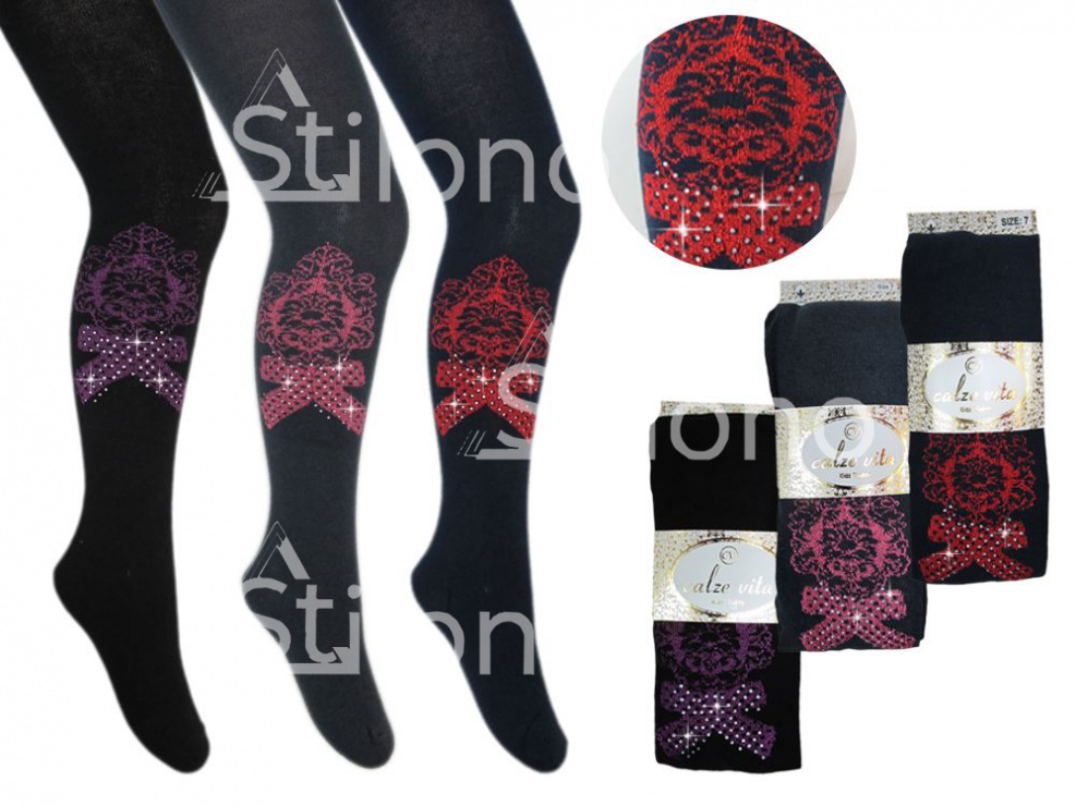 Колготки для девочки со стразами и рисунком 2042 CV